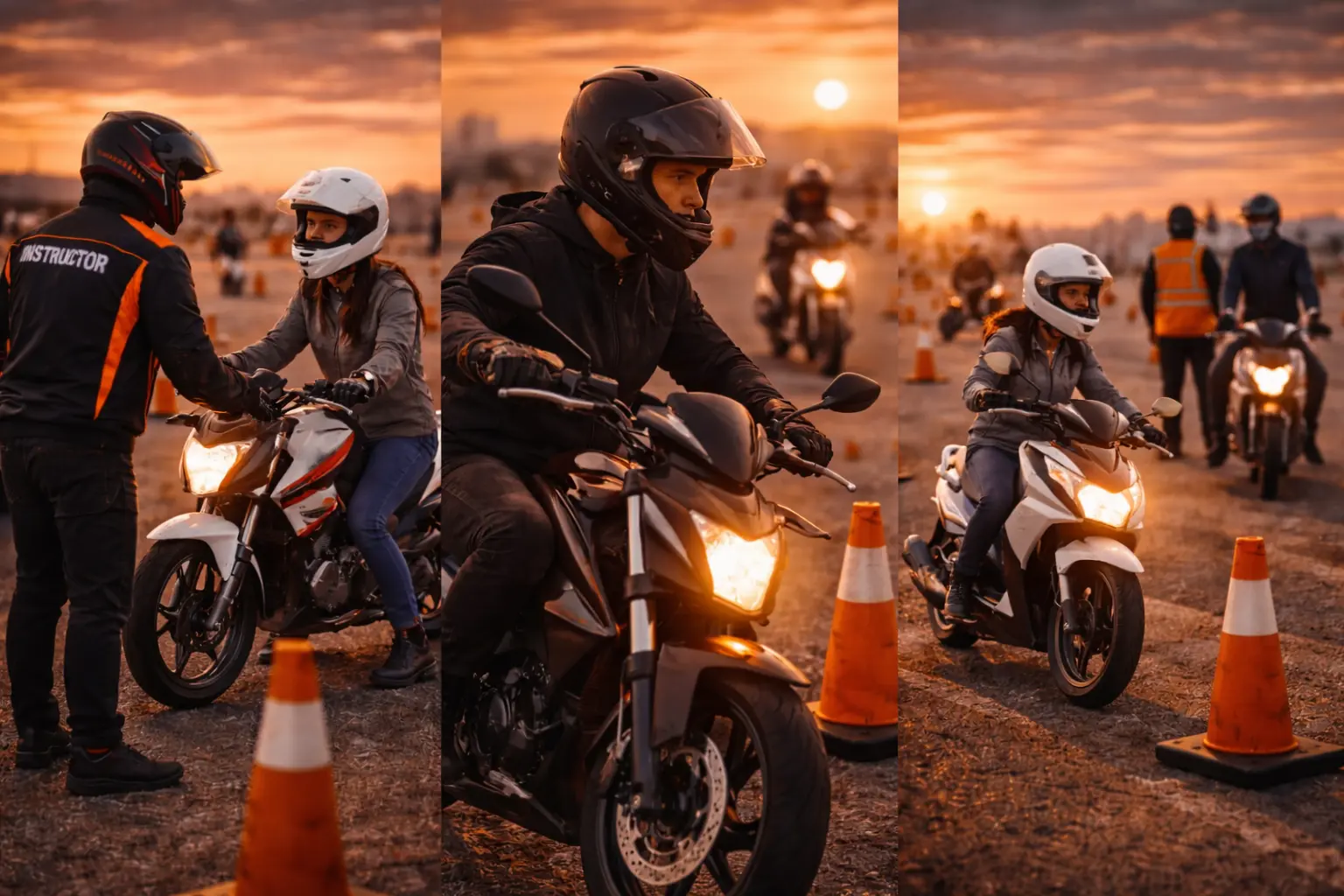 Pentru începători folosim moto/scutere previzibile, ușor de controlat, potrivite categoriei (A1 / A2 / A / 125B).